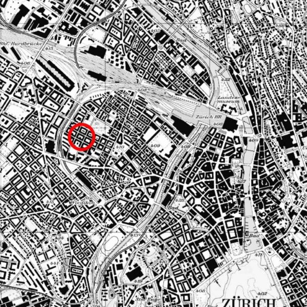 Das Müller-Martini-Areal liegt an einer städtebaulichen Bruchstelle, die einerseits durch das Bahnviadukt nach Wipkingen, anderseits durch die Hardstrasse gebildet wird. In diesem Gebiet finden sich Versatzstücke sowohl des vorderen Kreis 5 mit seiner Hofrandstruktur als auch dem industriellen hinteren Kreis 5.
