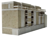 Die alte Halle von 1920 bestimmt die Anordnung der neuen Gebäudekörper auf dem Areal wesentlich. Auf insgesamt vier Baufeldern gruppieren sich, zueinander in einem Spannungsverhältnis stehende, autonome Gebäudekörper. Die vier Häuser können in Etappen realisiert werden und auch später einzeln bewirtschaft (und somit verkauft) werden.