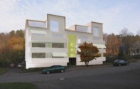Die Räume treten nun durchgängig als weisse Raumskulptur in Erscheinung. Neue, je nach Situation unterschiedlich angeschlagene Fenster erlauben differenzierte Ein- und Ausblicke. Alle Holzarbeiten sind in Lärchenholz ausgebildet und schaffen einen Kontrast zu den weiss gekalkten Wänden. Als architektonische und soziale Mitte des Hauses wurde ein traditioneller Kachelofen eingebaut.